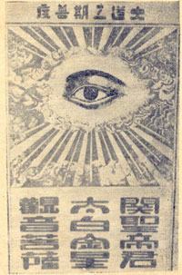 Tiên Ðạo: Phía hữu là Ðức Thái Thượng Ðạo Tổ, Giáo Chủ Tiên Ðạo.